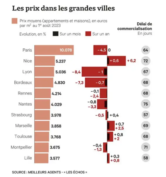 Seules les métropoles de Lille, Montpellier, et Marseille voient leurs prix continuer à croître. Dans la ville de Marseille, la croissance devrait se maintenir parce que le rattrapage des prix par rapport aux villes de même taille n’a pas encore été fait.